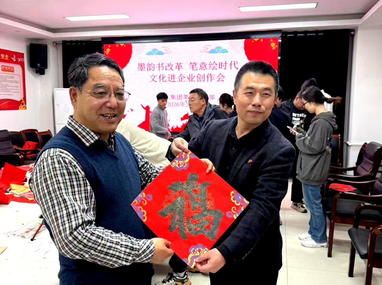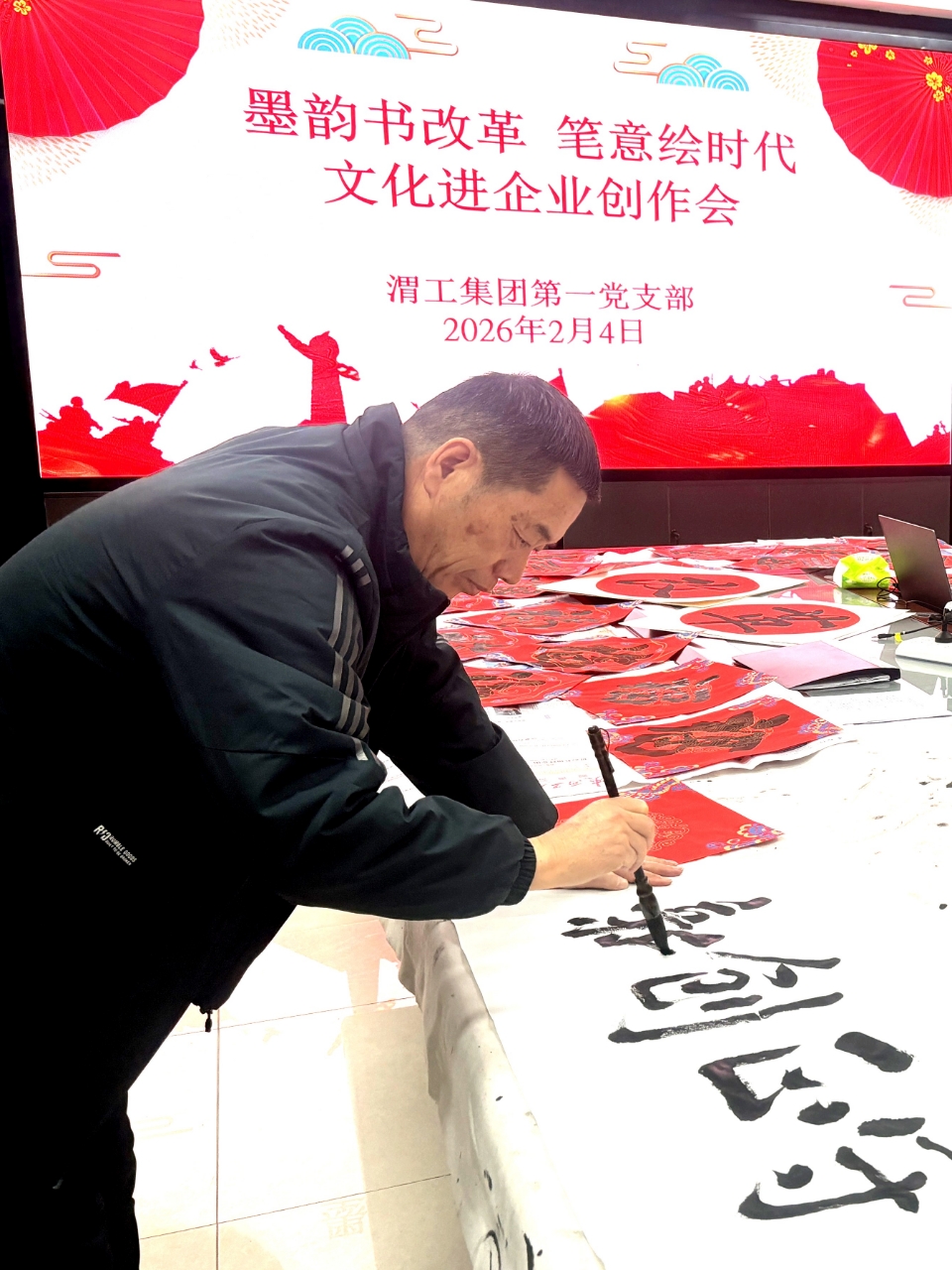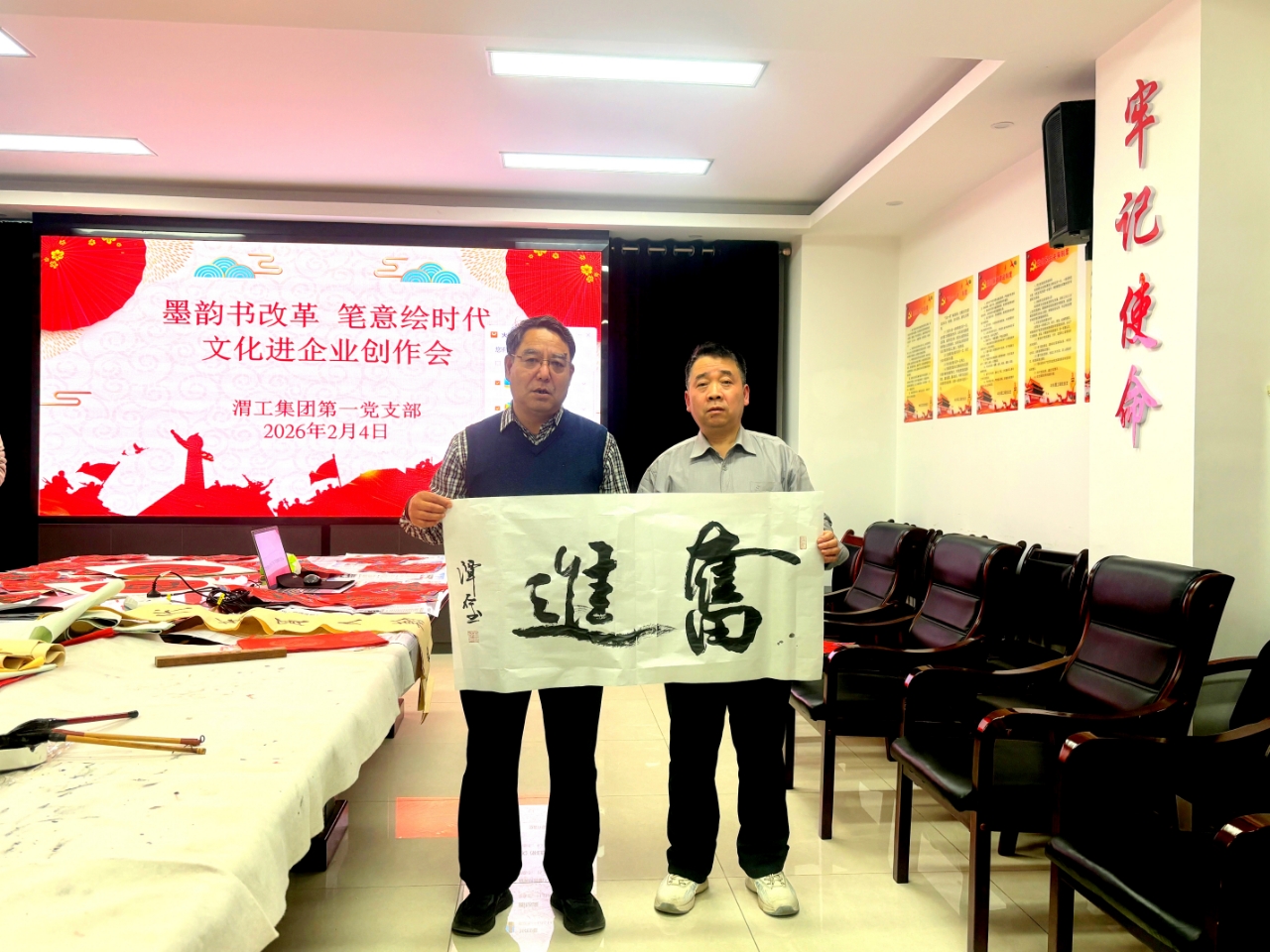 2月4日,渭工集团成功举办“墨韵书改革,笔意绘时代”主题党日活动。活动创新融合理论学习与传统文化体验,特邀中心四位书法家走进企业,以翰墨书香传递时代强音,营造了浓厚的文化氛围与学贯党的二十届四中全会精神热潮。