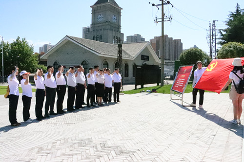 在长乐塬抗战工业遗址,全体党员面向鲜红党旗集体宣誓,重温入党誓词,并通过参观实物陈列、文献展示、多媒体展览,了解了抗战时期民族工业内迁历史、申新纱厂历史、工合运动以及宝鸡工业发展历史,切身感悟历经战火淬炼的民族精神、抗战精神、工业精神以及工合精神。