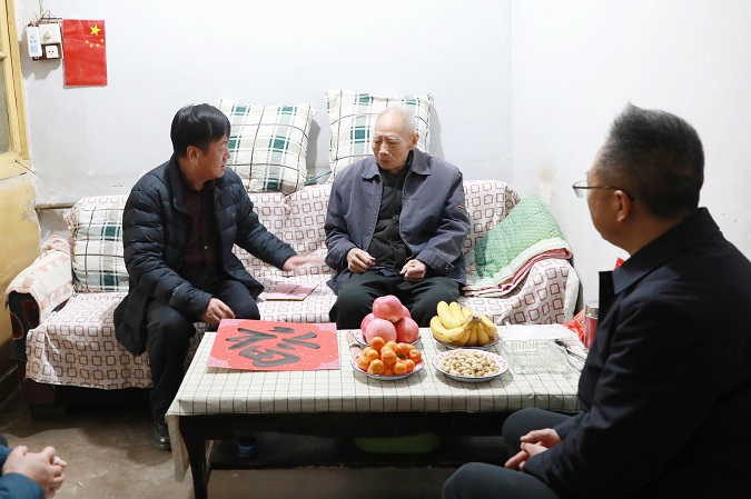 在老党员李进财家,左怀理仔细询问了他的身体和生活状况,送去慰问金和米、面、油等慰问品,悉心叮嘱要保重身体、愉快生活,希望继续关心支持灌区水利事业,为灌区改革发展建言献策。