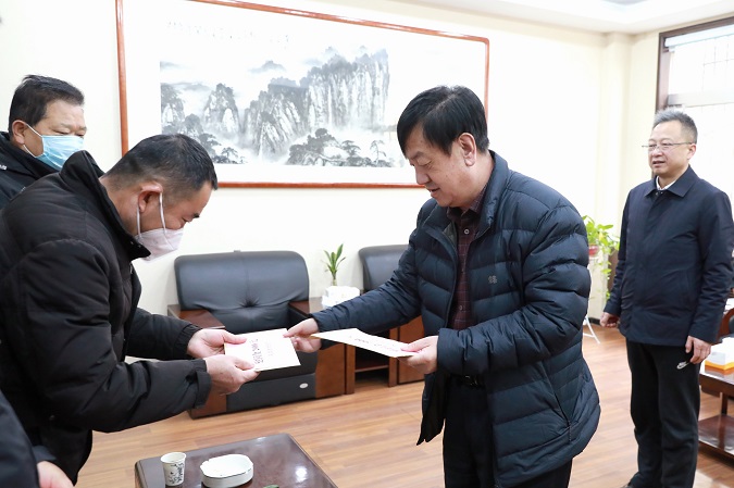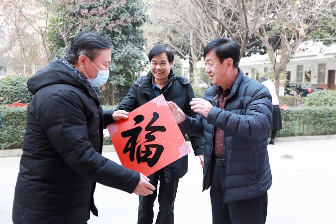 1月12日,省水利厅副厅长左怀理、厅直机关党委专职副书记牛福全等人代表水利厅党组,慰问中心老党员和困难党员。中心党委书记、主任刘勇,副主任杨联宏陪同慰问。