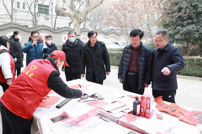 随后,左怀理来到中心举办的“玉兔贺春过大年”送祝福活动现场,向中心干部职工赠送了“福”字、送上了节日祝福。