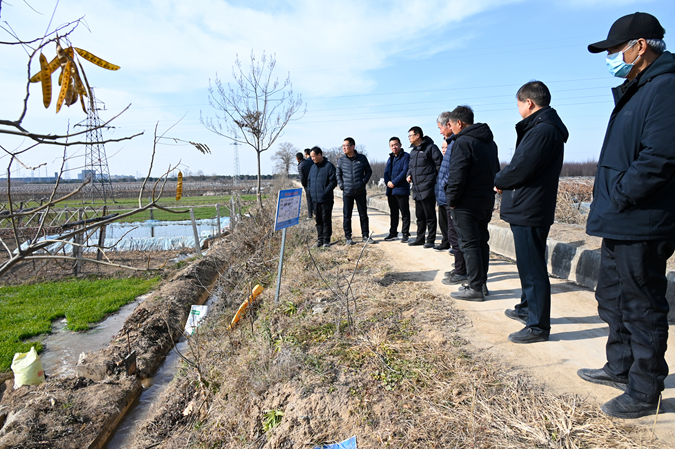 随后在固市站南三支10斗南马村苏阳组浇地现场,观看农作物用水情况,行干之间现场交流了各辖区农作物的生长程度、需水特点、灌溉方式以及冬灌以来的群众用水、灌溉定额情况等。并在南干总站进行了座谈交流,南干总站负责人、固市站负责人及相关行干人员分享了今年冬灌抗旱工作中的先进经验,与会人员并就当前用水形势进行了探讨交流,共商后期冬灌用水思路,为后期冬灌工作做准备。