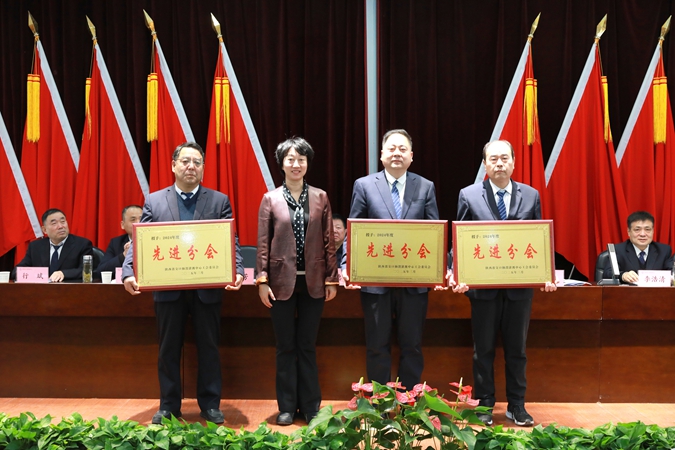 省农林水利气象工会主席周晓芳为先进分会颁奖