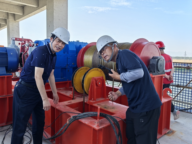 6月5日上午10时许,随着中心副主任同套文一声令下,工作人员按下控制柜按钮,中心渠首枢纽改造工程进水闸闸门缓缓升起,渭河之水涌入泵站前池,机组顺利启动,10孔进水闸成功通水试运行,标志着交口抽渭灌区“十四五”续建配套与现代化改造项目渠首引水枢纽改造及信息化建设工程取得决定性胜利,为当前正在开展的夏灌大流量满负荷运行奠定了坚实的工程基础。