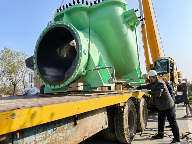 为保障大型设备安全运输,中心提前与厂方协商,科学规划运输路线,制定安全合理的装卸方案,为设备顺利运输、安全抵达渠首和后续安装提供了可靠保障。设备到场后,项目参建单位有关工作人员悉数到场,渠首站组织精兵强将,密切配合,认真有序开展设备开箱检查、起吊转运和进场安装等工作。随后,剩余3台水泵机组将陆续到场,渠首枢纽改造工程项目有序转入机电设备安装调试阶段。