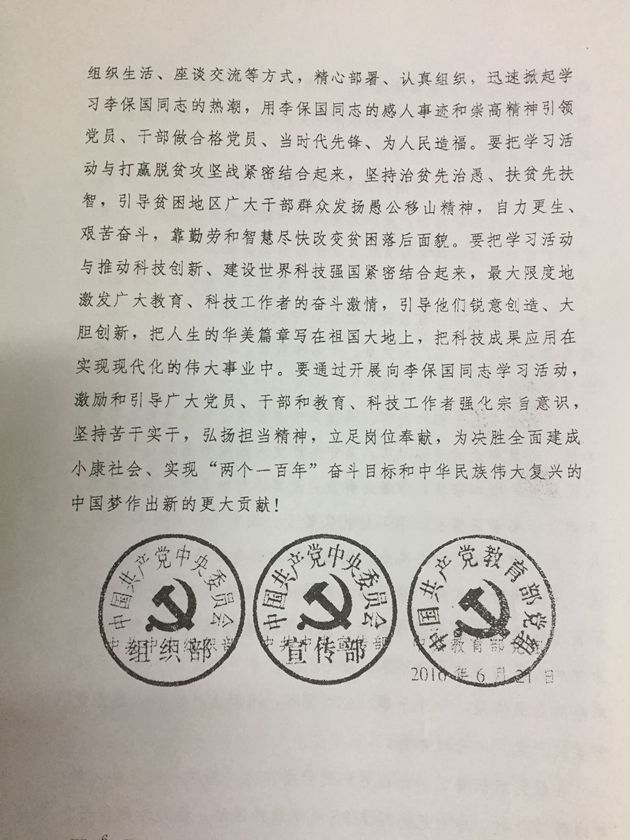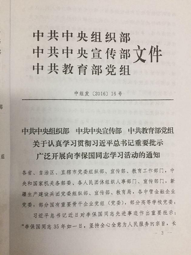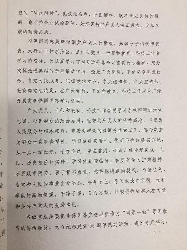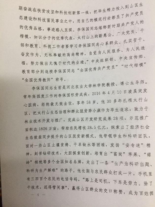 1、《关于认真学习贯彻习近平总书记重要指示广泛开展向李保国同志学习活动的通知》