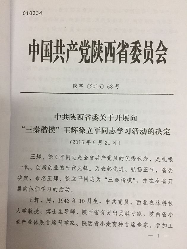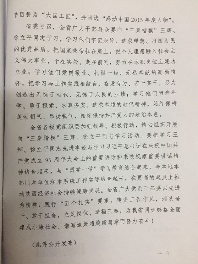 2、《关于开展向“三秦楷模”王辉徐立平同志学习活动的决定》