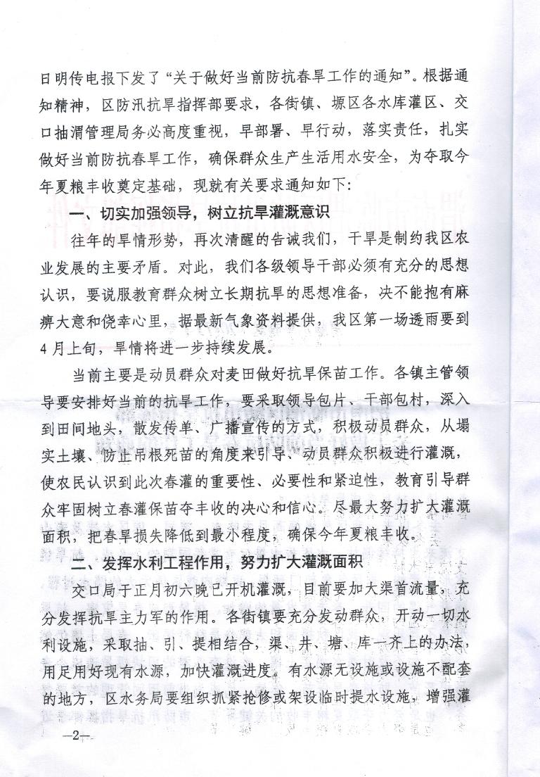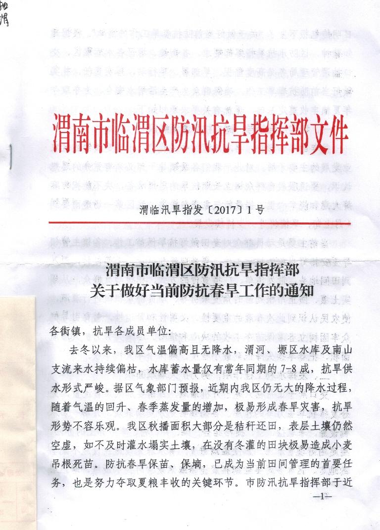 渭南市临渭区防汛抗旱指挥部关于做好当前防抗春旱工作的通知