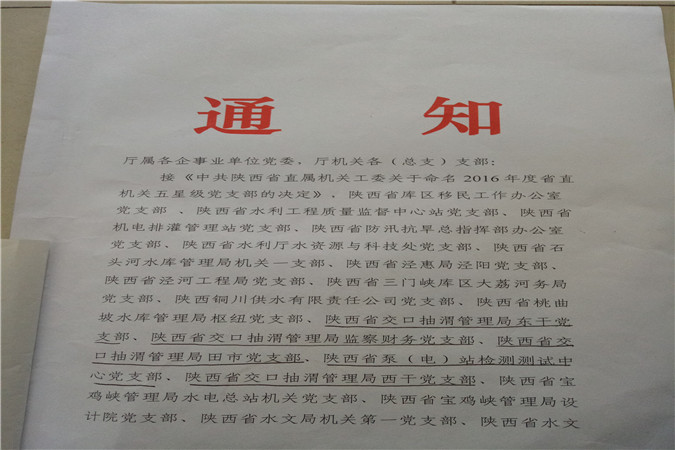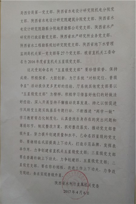 关于我局五个党支部获得“五星级党支部”荣誉的通知